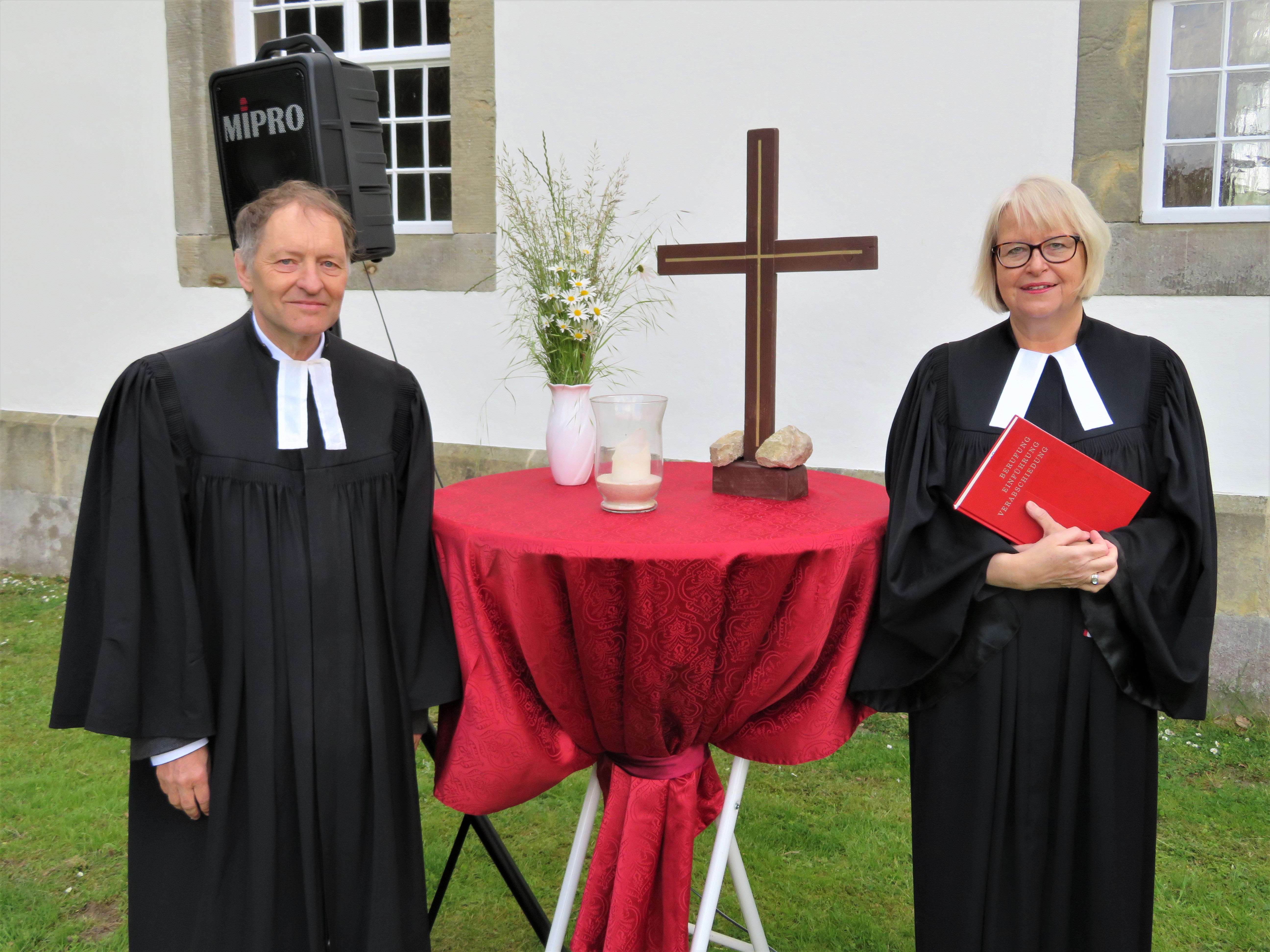 Bönnien. Dieses Pfingstfest war für die Gemeinde Trinitatis im Ambergau ein ganz besonderes. Rund 150 Besucher waren zum Open-Air-Gottesdienst nach Bönnien gekommen, um den neuen Pastor Gerd Meyer-Lochmann zu begrüßen. „Ein richtig tolles Geschenk zum Pfingstfest“, sagte Superintendentin Katharina Henking während der Amtseinführung. Mit dem 62-jährigen Pastor erhalte die Gemeinde einen verdienten, erfahrenen und theologisch hoch gebildeten Pfarrer. Ganz nach dem Motto: Das Beste kommt zum Schluss.
