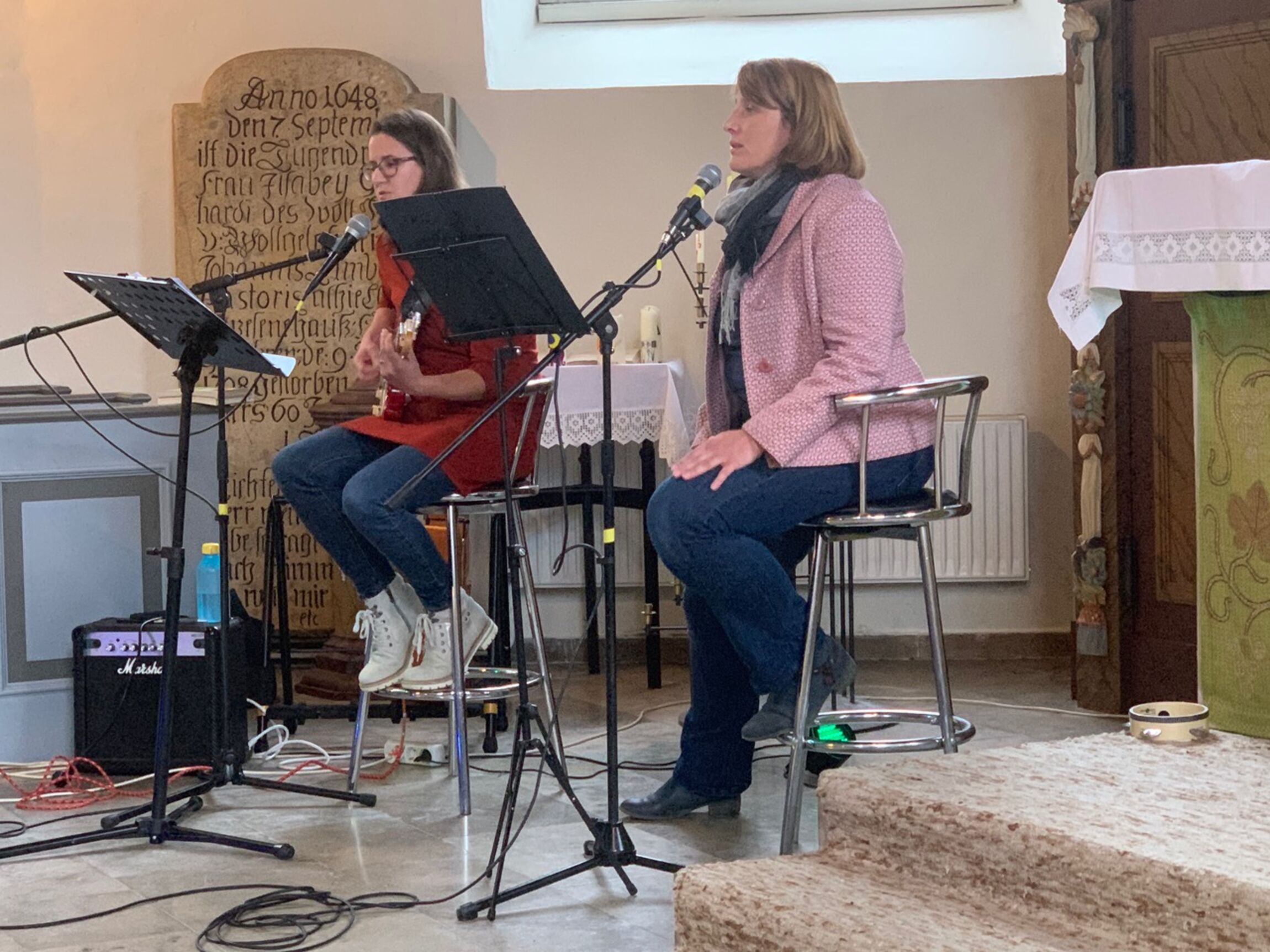 Heersum. Erstmal hatte die Kirchengemeinde Heersum einen Pop-Gottesdienst gefeiert – und es war gleich ein erfolgreicher Auftakt. Genau so viele Besucher wie in Corona-Zeiten in die Heersumer Kirche dürfen, waren am Sonntagnachmittag (27. September) um 17 Uhr gekommen. Und sie wurden in dem Gottesdienst unter dem Thema „ zum Glück“ unter anderem von der Musik überrascht. Das Duo aus Jessica Klein (Gitarren und Gesang) und Nadine Miske (Gesang) zog die Gottesdienstbesucher sofort in ihren Bann. Zu hören waren Stücke unter anderem von den Toten Hosen, U2 und Nena. Und auch die Wortbeiträge richteten sich vor allem an ein jüngere Gottesdienstbesucher. Beispielsweise gab es einen kurzen Film mit Stellungnahmen von Heersumern zum Thema Glück. Fürbittenwünsche konnten übers Handy direkt an das Team des Gottesdienstes verschickt werden und wurden dann kurzfristig in das Gebet eingebaut.Nach dem großen Erfolg zum Auftakt plant ein Team um Prädikant Mathias Klein schon den nächsten Pop-Gottesdienst. Der soll am Valentinstag im kommenden Jahr stattfinden. Am Sonntag 14. Februar 2021 geht es dann in der Heersumer Kirche, wie könnte es an diesem Tag anders sein, um das Thema „Liebe“. Dann sind sicherlich auch rote Rosen dabei. Und vielleicht auch ein Schlagzeuger oder eine Schlagzeugerin, der oder die Lust hat, die beiden Musikerinnen zu unterstützen.