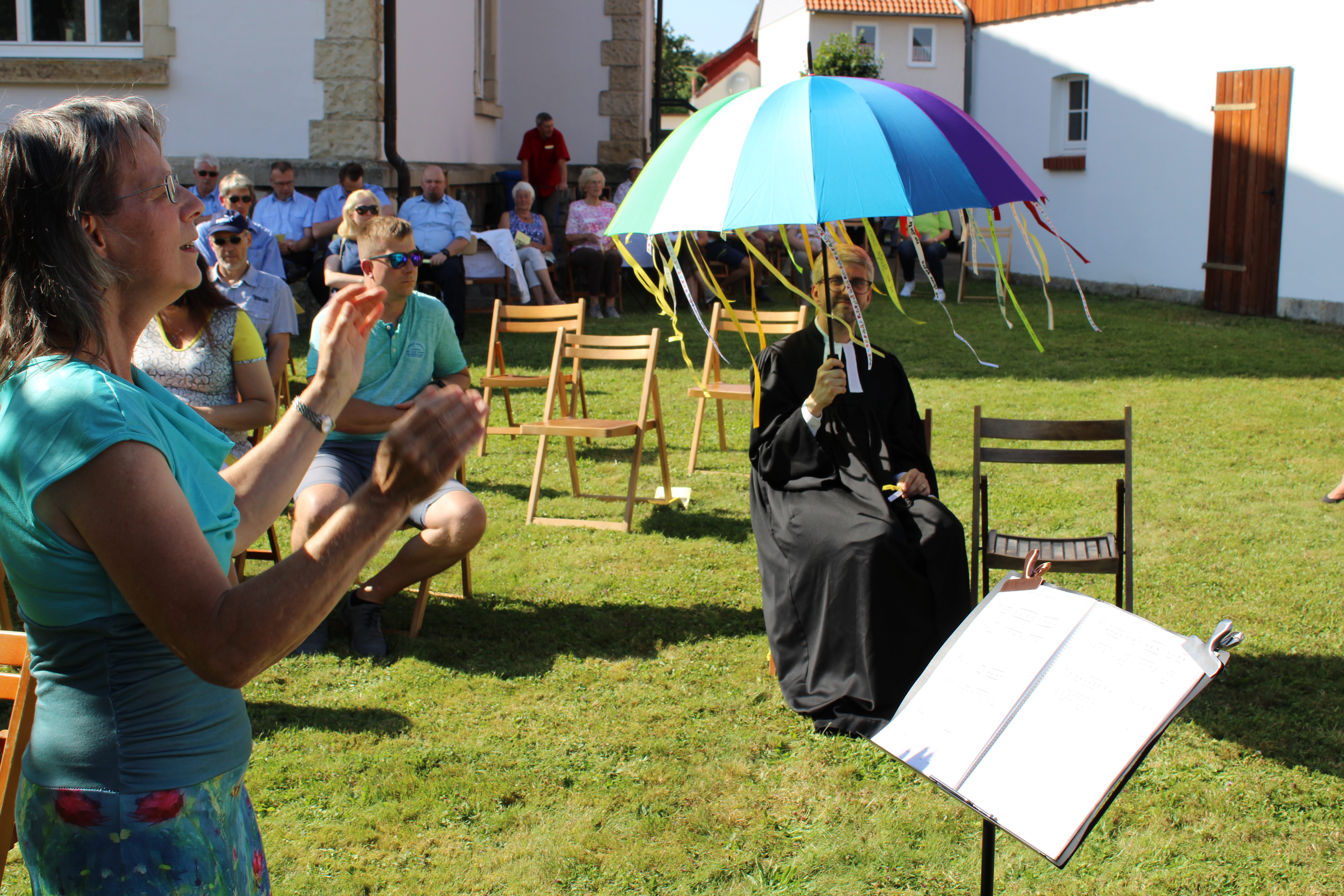 Im Abschiedsgottesdienst erinnerte Röser-Israel an seinen Ordination vor vier Jahren, als die Sonne wie jetzt mit ganzer Kraft vom Himmel strahlte. Damals sei er mit offenen Armen empfangen worden, so dass er das Dorfleben in der Folgezeit von seiner schönsten Seite kennenlernen durfte.