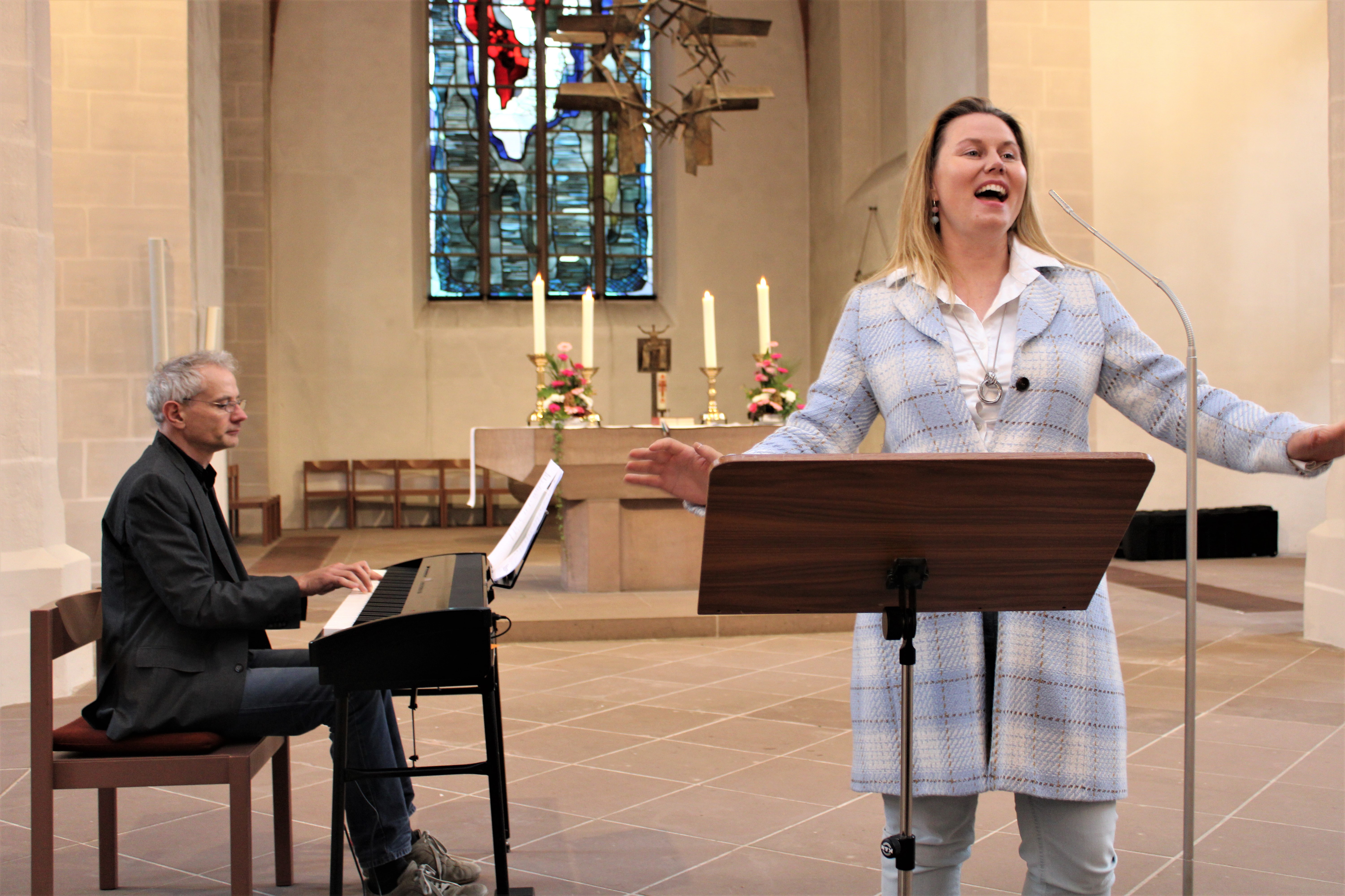 Maßgeblichen Anteil daran hatten Kirchenkreiskantorin Hanna Jursch (Gesang) und Valentin Brand (Keyboard). Mit beschwingter Musik unterhielt das Duo die Lehrerinnen und Lehrer im Gottesdienst, in dem Superintendentin Katharina Henking die Predigt hielt. Peter Rütters