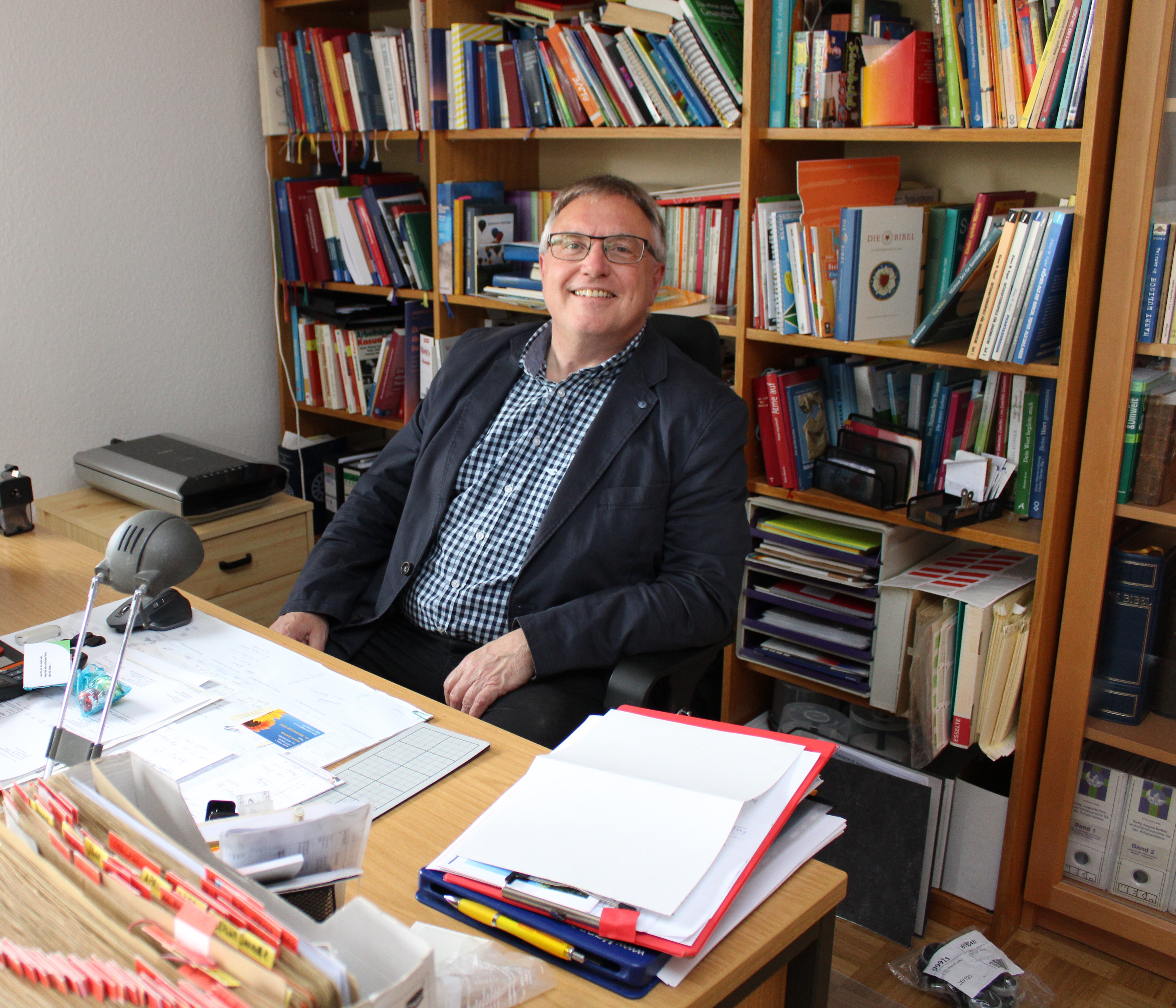 Mittlerweile hat Bernd Ulrich Rüter sein Büro eingerichtet. Die Bücherregale sind gefüllt, auf dem Schreibtisch liegt die tägliche Korrespondenz, und auch die Büste von Martin Luther hat ihren Platz auf der Fensterbank gefunden. Gleich nach seiner Ankunft hat Rüter alle Kirchenvorstände und relevanten Gruppen angeschrieben, um die Menschen kennenzulernen. Das macht er bevorzugt bei einstündigen Spaziergängen, da sich so zwanglose Gespräche ergeben und die Leute unverkrampft auf ihn zu gehen: „Im Gehen redet es sich besser, das löst die Zunge“, hat Rüter bei den vielen Traugesprächen festgestellt, die er in der Vergangenheit in der Drei-Kirchengemeinde Burgstemmen, Heyersum und Mahlerten sowie der St. Dionysus-Gemeinde Adensen angeboten hat. Jetzt werden diese Gespräche noch ein Stück weit interessanter, da er gleichzeitig auch die Stadt Alfeld kennenlernt.
