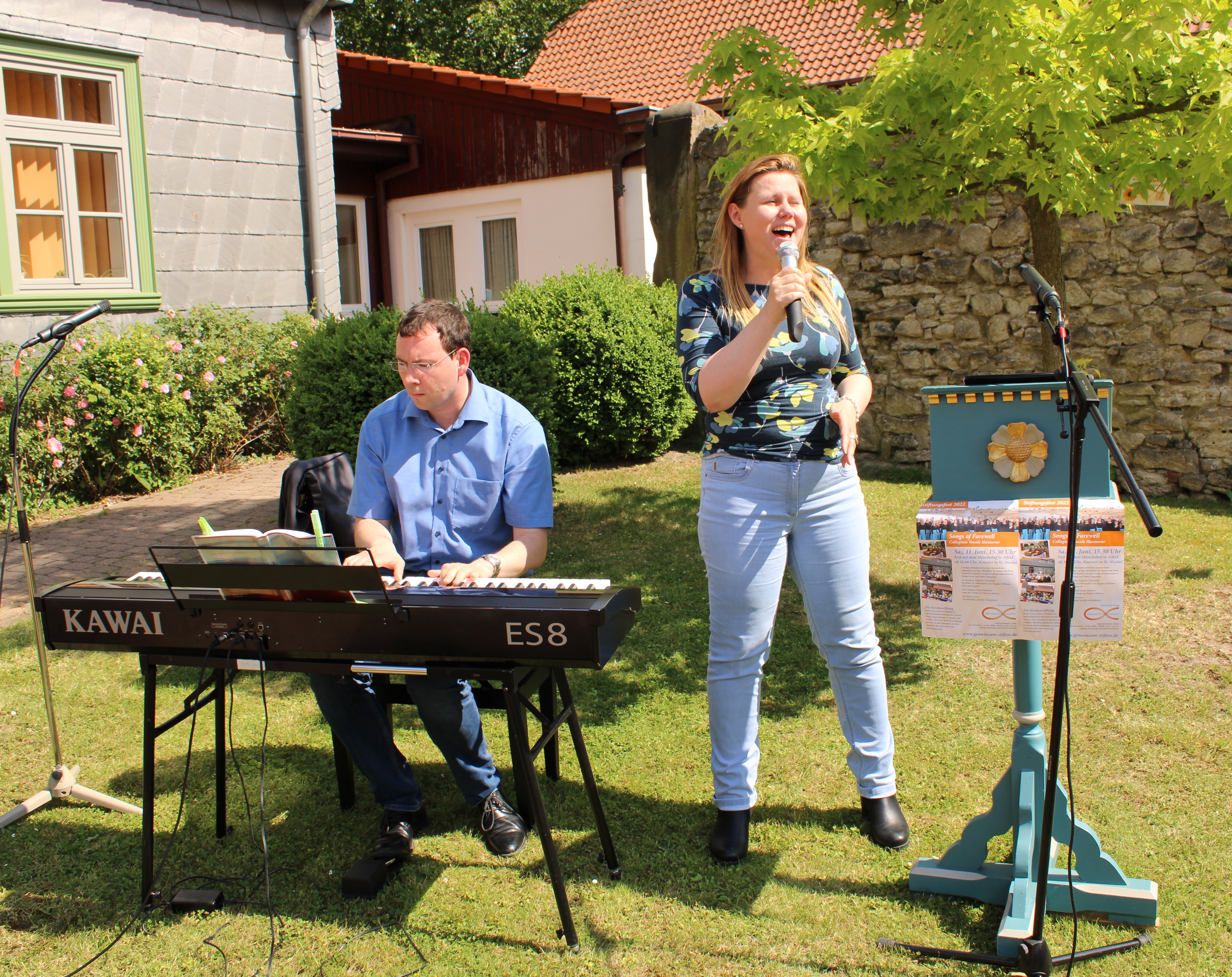 Alfeld. Auf diesen Tag haben die Mitglieder der Kirchenstiftung „miteinander - füreinander“ lange warten müssen. Umso größer war die Freude, als nach einer zweijährigen coronabedingten Zwangspause jetzt wieder ein Stiftungsfest auf dem Alfelder Mönchehof stattfinden konnten. Bei schönstem Sommerwetter erlebten die Besucher eine paar vergnügliche Stunden mit allerlei Leckereien und Musik der beiden KirchenkantorInnen Hanna Jursch und Tobias Langwisch, bevor am Abend der Höhepunkt mit einem Konzert des Vocale Hannover unter dem Motto „Songs of Farewell“ in der St. Nicolai-Kirche den Tag beschloss.