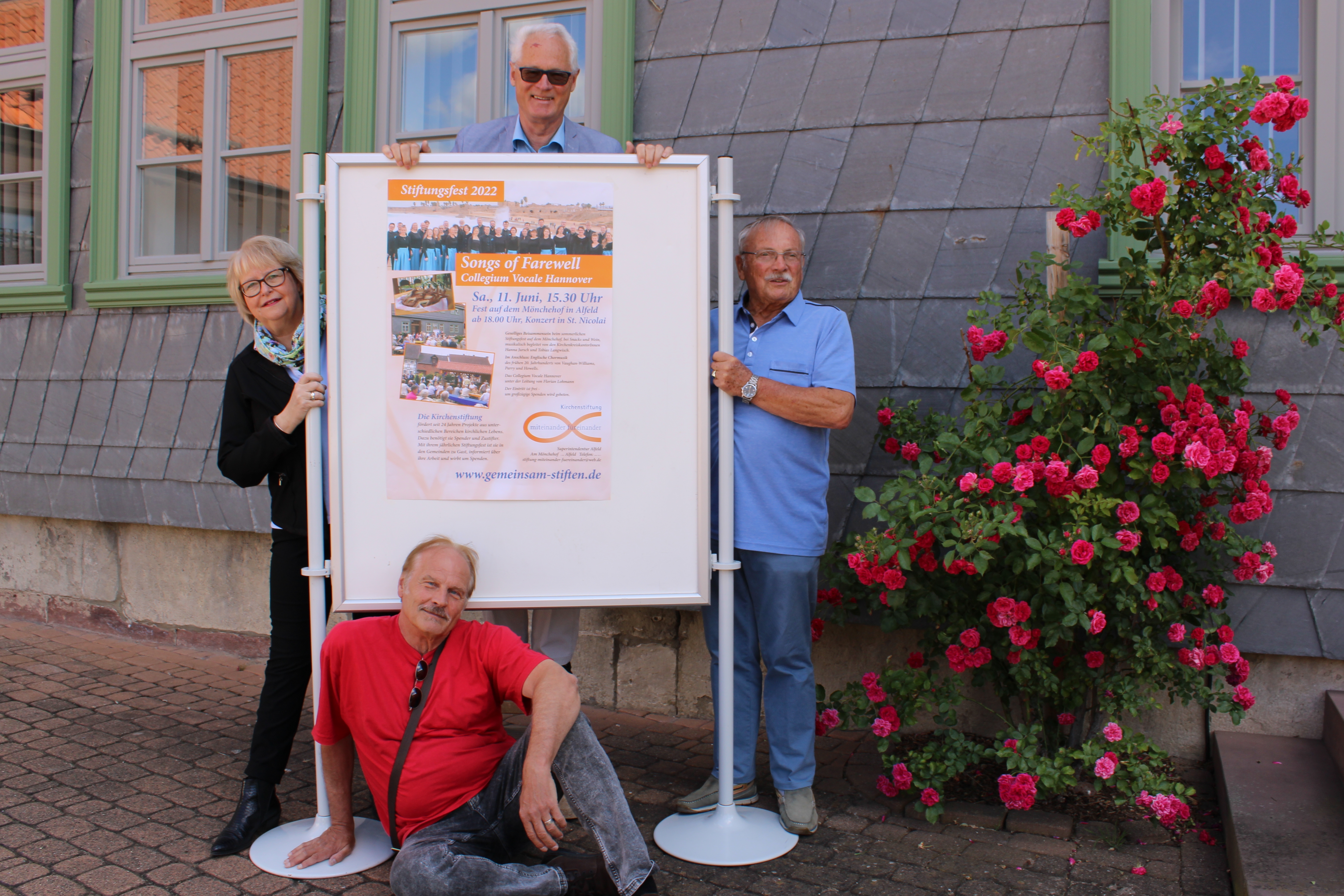 Nach dem Zusammenschluss mit dem damaligen Kirchenkreis Elze ist eine Förderung auch in der dortigen Region möglich, da Projekte im gesamten Kirchenkreis Hildesheimer Land-Alfeld unterstützt werden können. „Eine kleine Stiftung kann große Projekte fördern und nachhaltig Gutes tun“, sagt die Vorstandsvorsitzende Katharina Henking. Gemeinsam mit Geschäftsführer Hans Nottbohm, dem Kuratoriumsvorsitzender Wilfried Röbbeln und Schriftführer Klaus-Dieter Klees stellte sie jetzt das Programm für den kommenden Samstag vor. Der Clou dabei: alle Angebote auf dem Mönchehof sowie das a-cappella-Konzert in der Kirche mit englischer Chormusik des frühen 20. Jahrhunderts sind kostenlos.