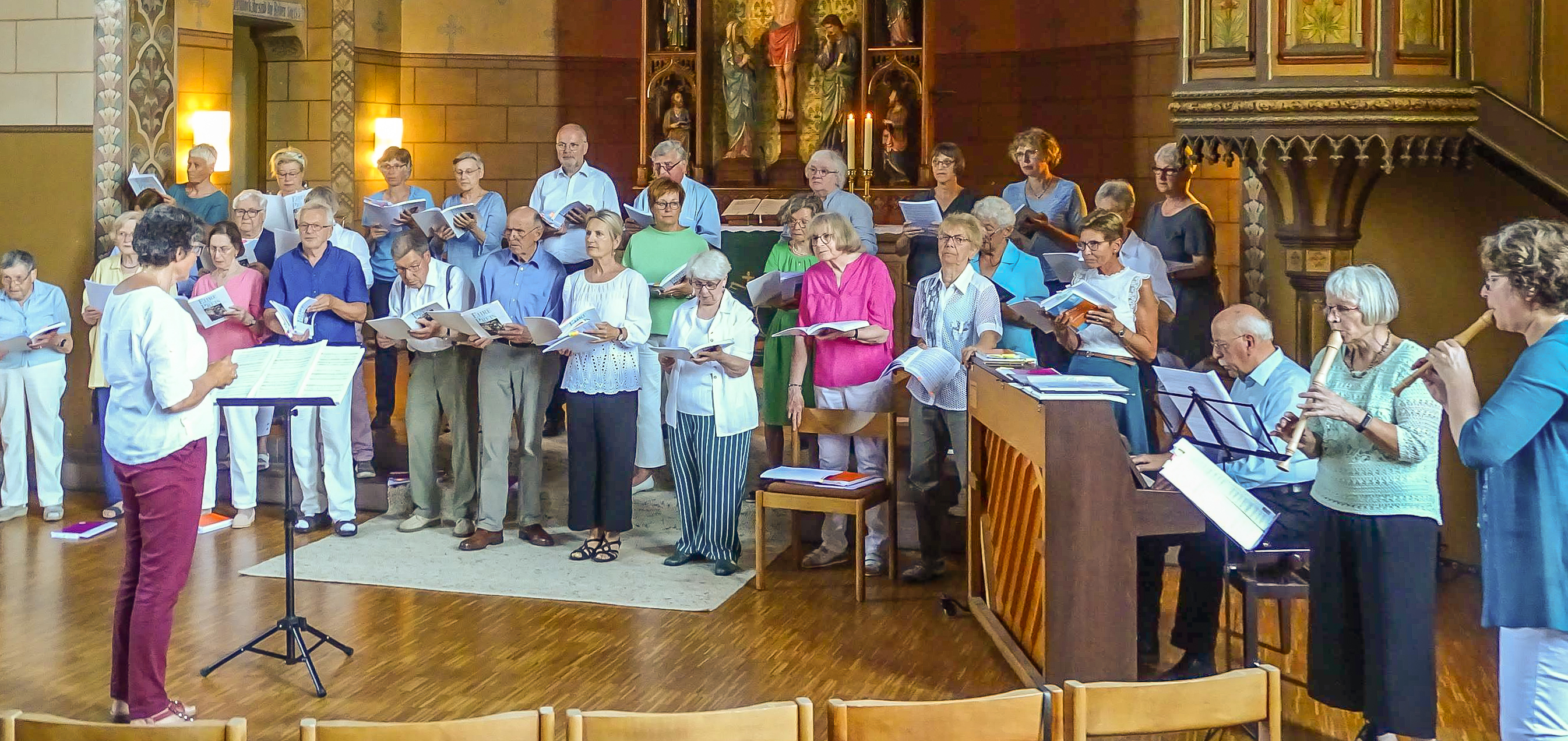 Ein Ohrenschmaus war ebenso das Abendlied „Der Tag mein Gott ist nun vergangen“ mit Klavierbegleitung von Siegfried Schütz und Barbara Dräger und Jutta Schlesselmann an den Blockflöten.