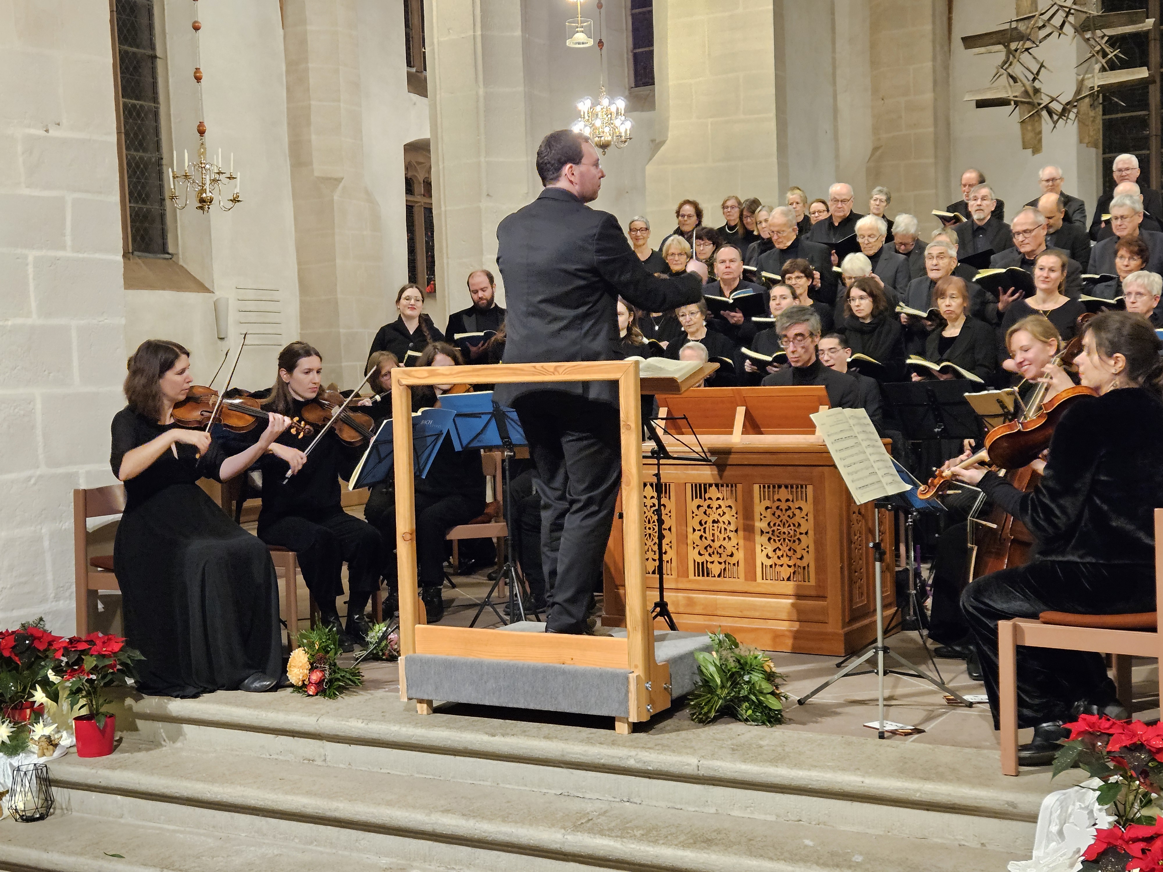 Kirchenkreiskantor Tobias Langwisch hatte sich für die ersten drei der sechs Kantaten und damit für die wohl bekanntesten Stücke des Weihnachtsoratoriums entschieden. Eine gute Entscheidung, denn schon beim „Jauchzet, Frohlocket“ des Chores wurde das Startsignal für die festliche Stimmung in der Stadtkirche gegeben.