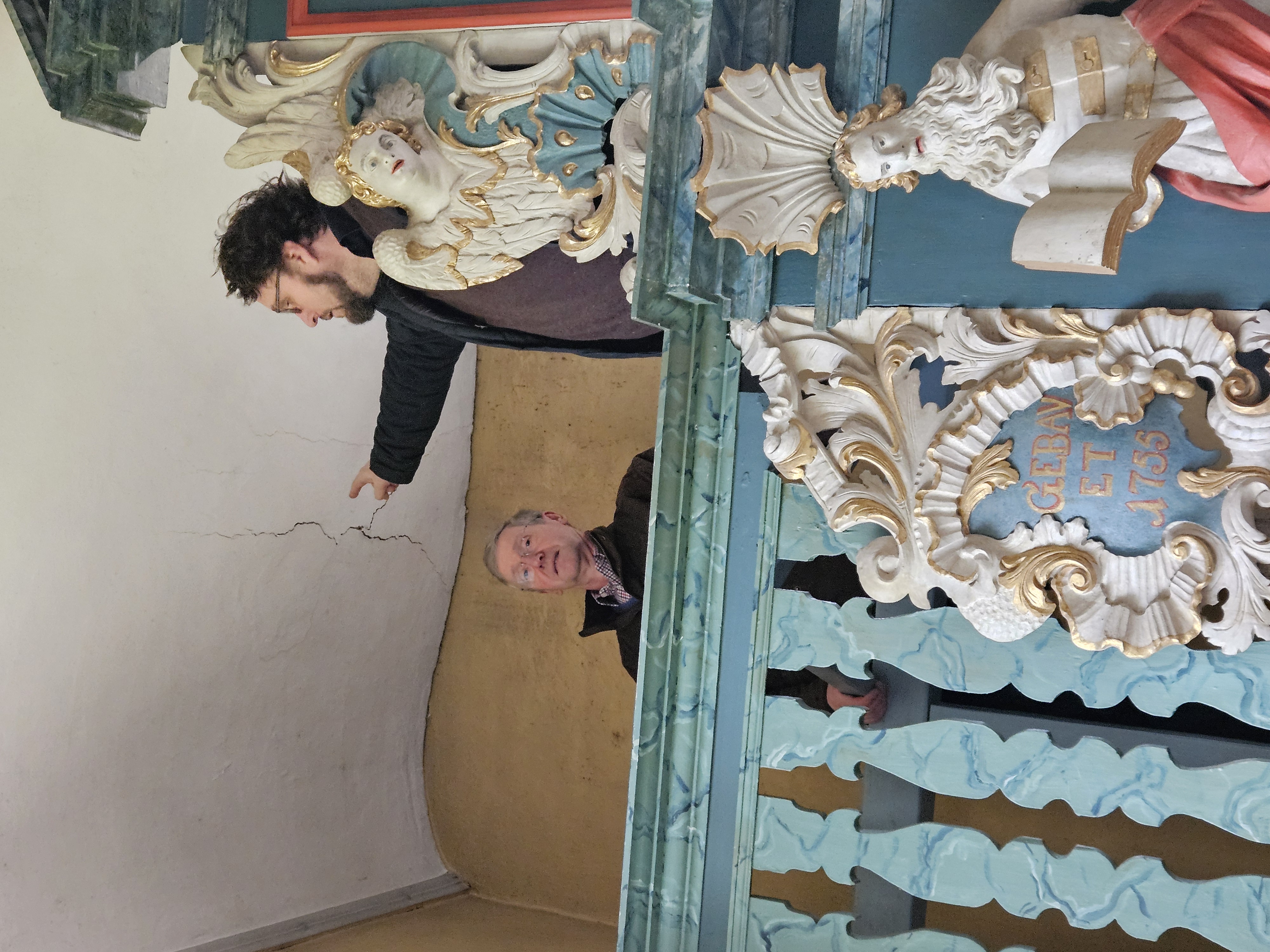 Tobias Lecher und Wulf-Marcus Wegener vom Kirchenvorstand stehen auf der Empore oberhalb des Altars und richten ihre Blicke auf die weiß getünchte Decke. Dort ist ein etwa 80 Zentimeter langer Riss zu sehen, der im Lauf der Zeit immer größer wurde. Der Kirchenvorstand schaltete daraufhin Thido Saueressig vom Amt für Bau- und Kunstpflege Hildesheim ein, der den Schaden genauer unter die Lupe nahm.