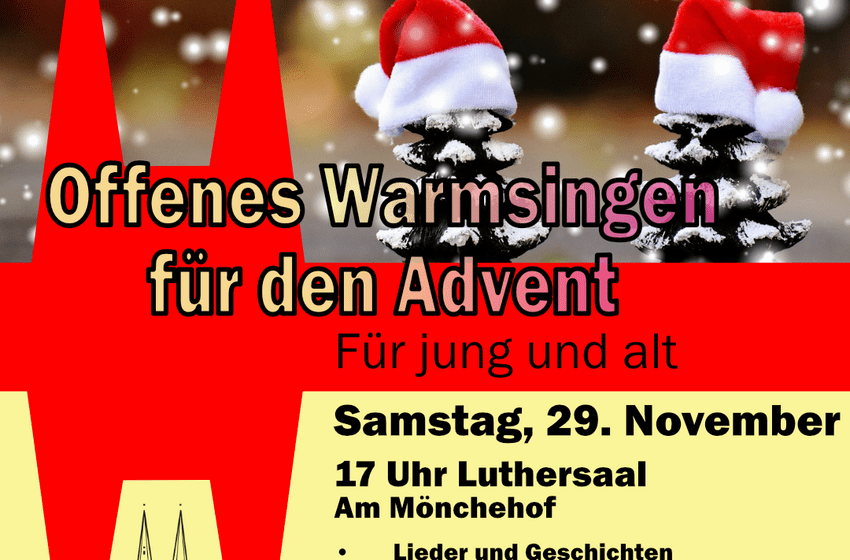 Alfeld - Die Kirchengemeinde St. Nicolai Alfeld lädt für Samstag, 29. November, um 17 Uhr zu einem „offenen Warmsingen für den Advent“ in den Luthersaal, Am Mönchehof, ein. Der Luthersaal öffnet ...