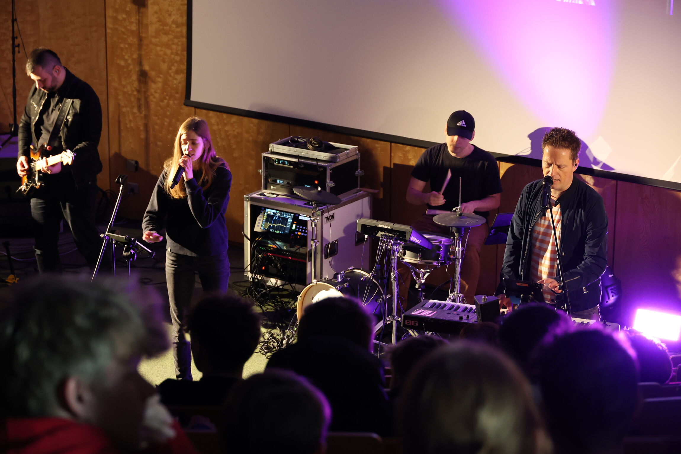Alfeld – Dass man sich auch singend dem Thema Reformation nähern kann, bewies kürzlich der Popkantor der Landeskirche, Til von Dombois, der mit seiner Band in der Aula der Berufsbildenden Schulen Alfeld (BBS) unter dem Titel „Rock’n Reformation“ auftrat. Rund 200 Schülerinnen und Schüler klatschten und sangen begeistert mit, als Sängerin Chiara Bon, Jan Jurat (Gitarre), Julian Russi (Drums) und Til von Dombois (Keyboard und Gesang) bekannte Songs wie „Lieblingsmensch“ von Namika oder „Komm frei sein“ anstimmten. Bei „Fields of Gold“ zückten die Jugendlichen dann ihre Smartphones und schwenkten sie mit eingeschalteter Taschenlampe im Takt der Musik.