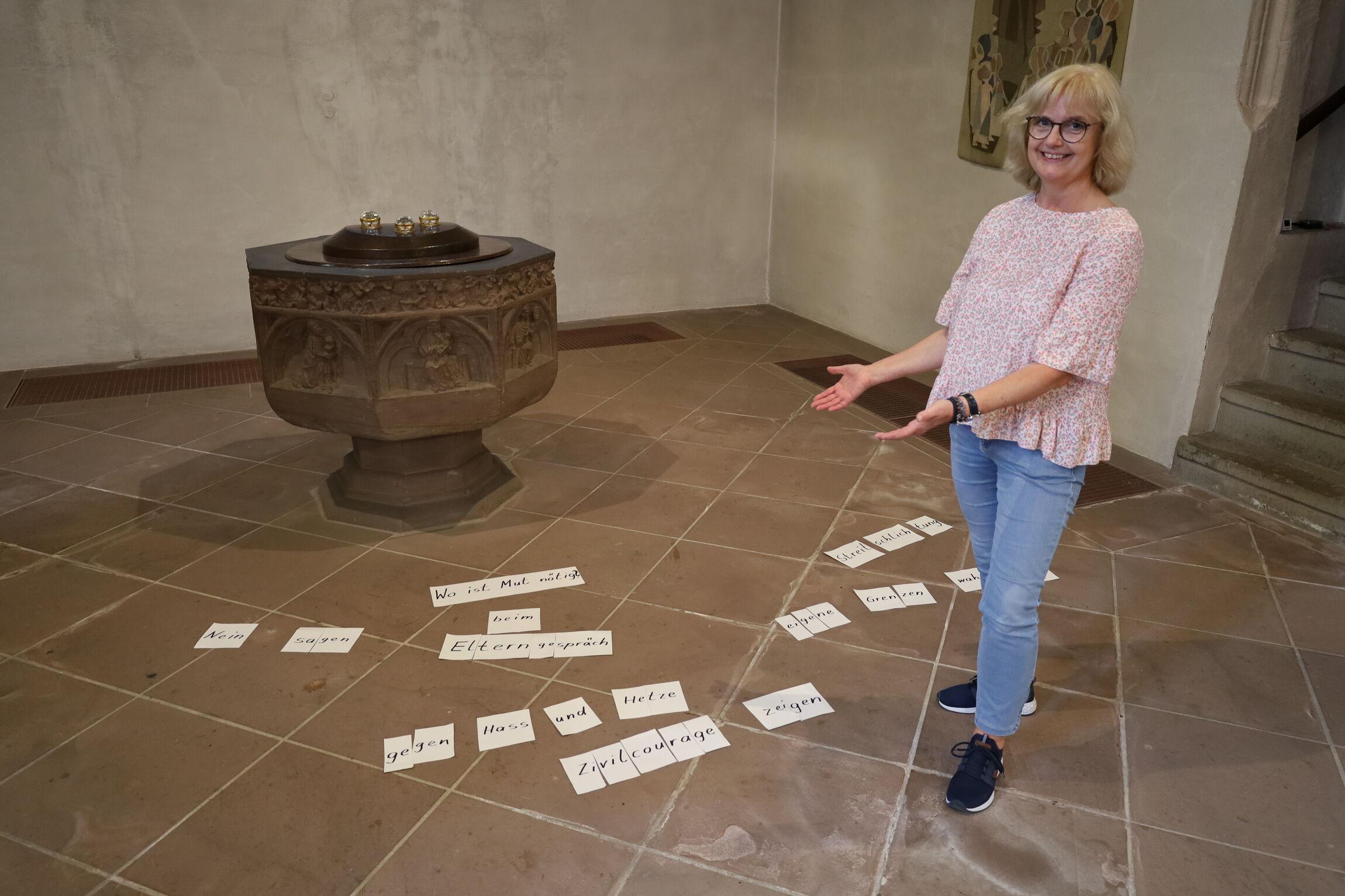Mit Songs wie „Mutig, stark, beherzt gehen wir auf dem Weg voran“ oder „Lass es in Liebe geschehen“ ermutigte Kirchenkreiskantorin Hanna Jursch zum Mitsingen und sorgte für Zuversicht bei den Teilnehmenden.