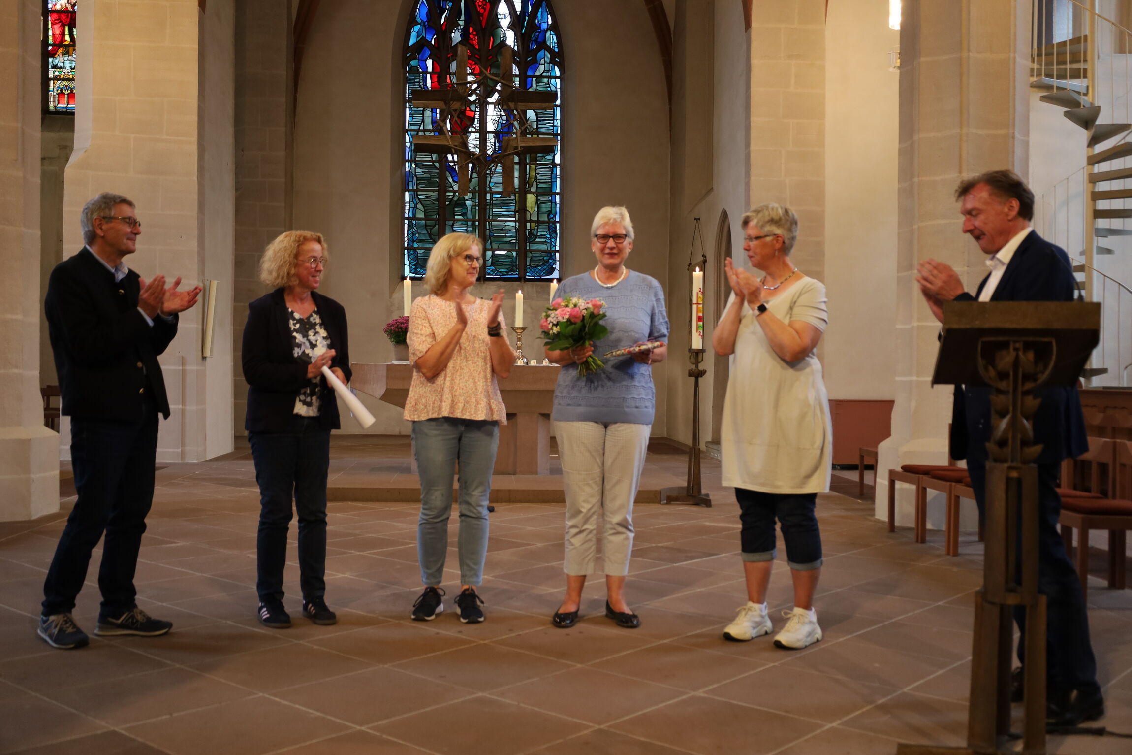 Zum Abschluss des Gottesdienstes wurde Cornelia Uhde, die sich seit zehn Jahren im religionspädagogischen Arbeitskreis engagiert hat den Ruhestand verabschiedet. Pastor Dr. Matthias Günther übergab ihr zum Dank für die geleistete Arbeit einen Strauß Blumen.