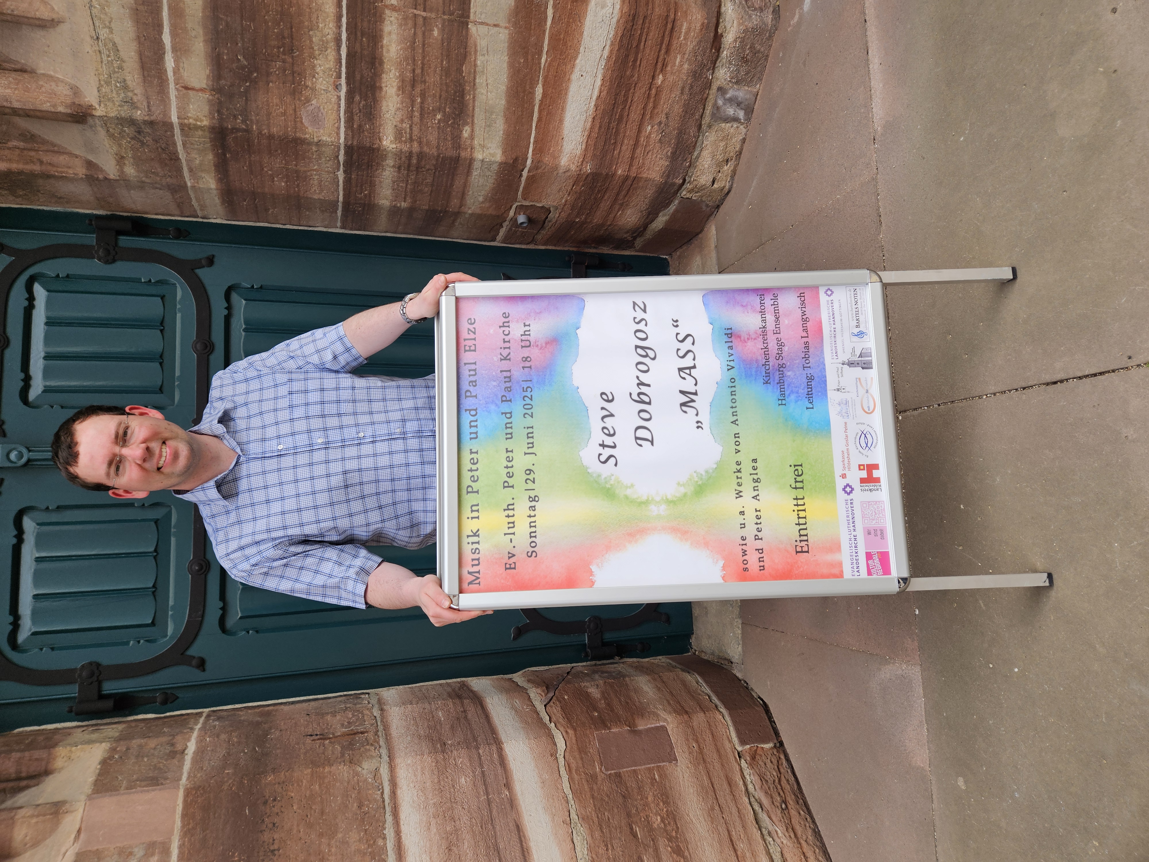 Im Mittelpunkt steht Steve Dobrogosz „Mass“, dessen Messe auf einzigartige Weise sakrale Musik mit Jazz- und Pop-Elementen verbindet. „Die klare emotionale Tonsprache verleiht dem traditionellen Messetext eine neue, berührende Intensität“, verspricht Tobias Langwisch, der das Konzert seit Januar mit der Kirchenkreiskantorei Hildesheimer Land-Alfeld vorbereitet hat. Dobrogosz selbst sagte über seine Musik, sie solle „die Herzen der Menschen erreichen, nicht nur ihre Köpfe“.