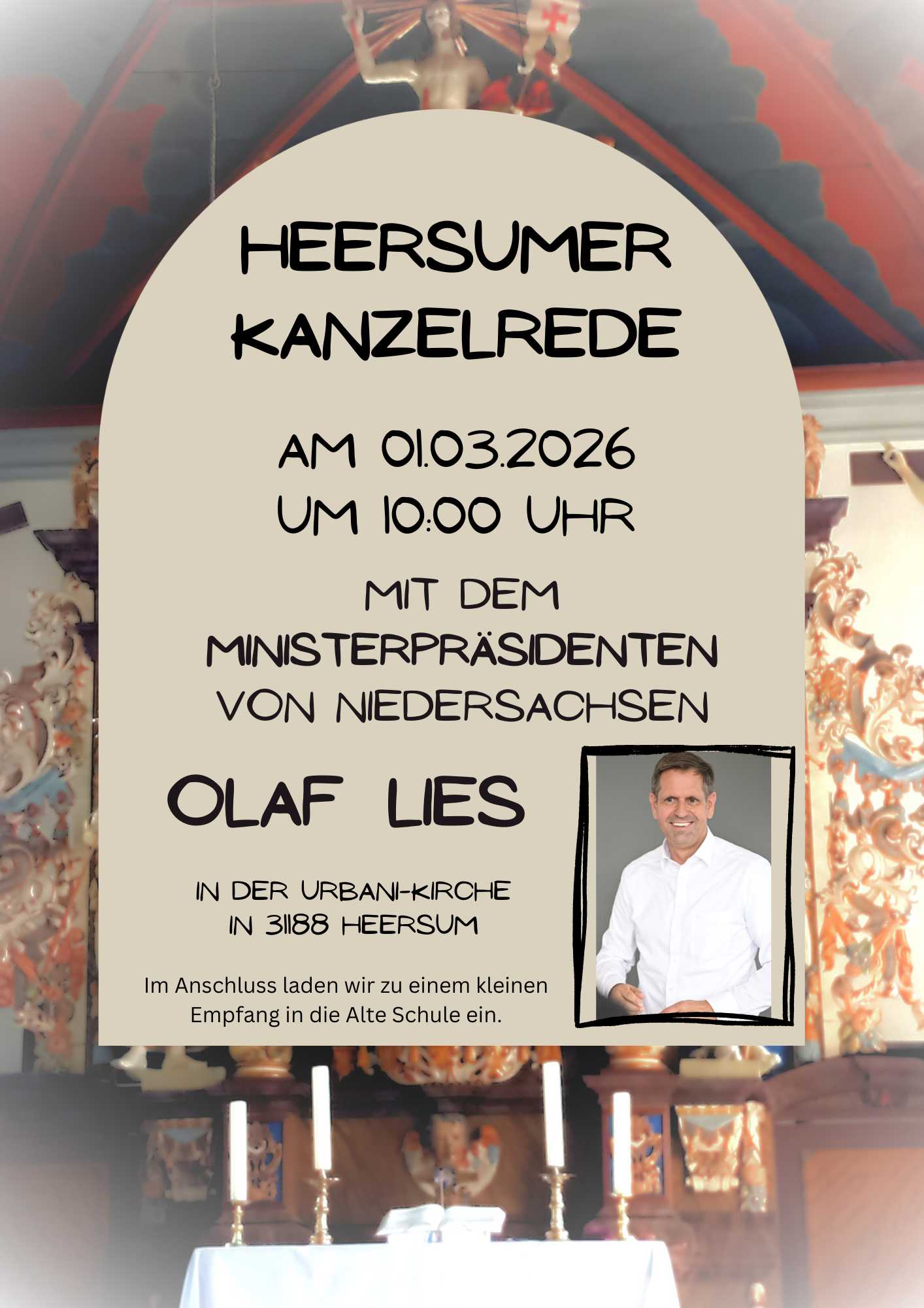 Heersum - Ministerpräsident Olaf Lies kommt am Sonntag, 1. März, nach Heersum und spricht im Gottesdienst über das Verhältnis von Kirche und Demokratie sowie die besondere Rolle der Kirche. Der Besuch findet in der Heersumer Reihe bekannter Kanzelredner statt.