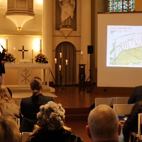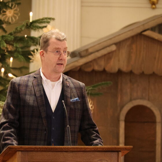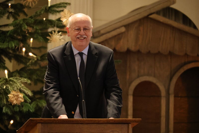 In seiner Andacht hob Pastor Dr. Jens-Arne Edelmann das außergewöhnliche Engagement der Menschen für ihre Stadt hervor. Am Beispiel der biblischen Geschichte vom Hauptmann von Kapernaum machte er deutlich, wie Glaube und Zusammenhalt gerade in schwierigen Zeiten Mut und Hoffnung schenken können. Zwei Jahrhunderte Stadtgeschichte könnten genau diesen Mut geben, betonte Edelmann und erinnerte an die vielen kleinen, aber mutigen Taten – von den Geflüchteten der Weltkriegsjahre bis zu denen, die sich heute für andere einsetzen.