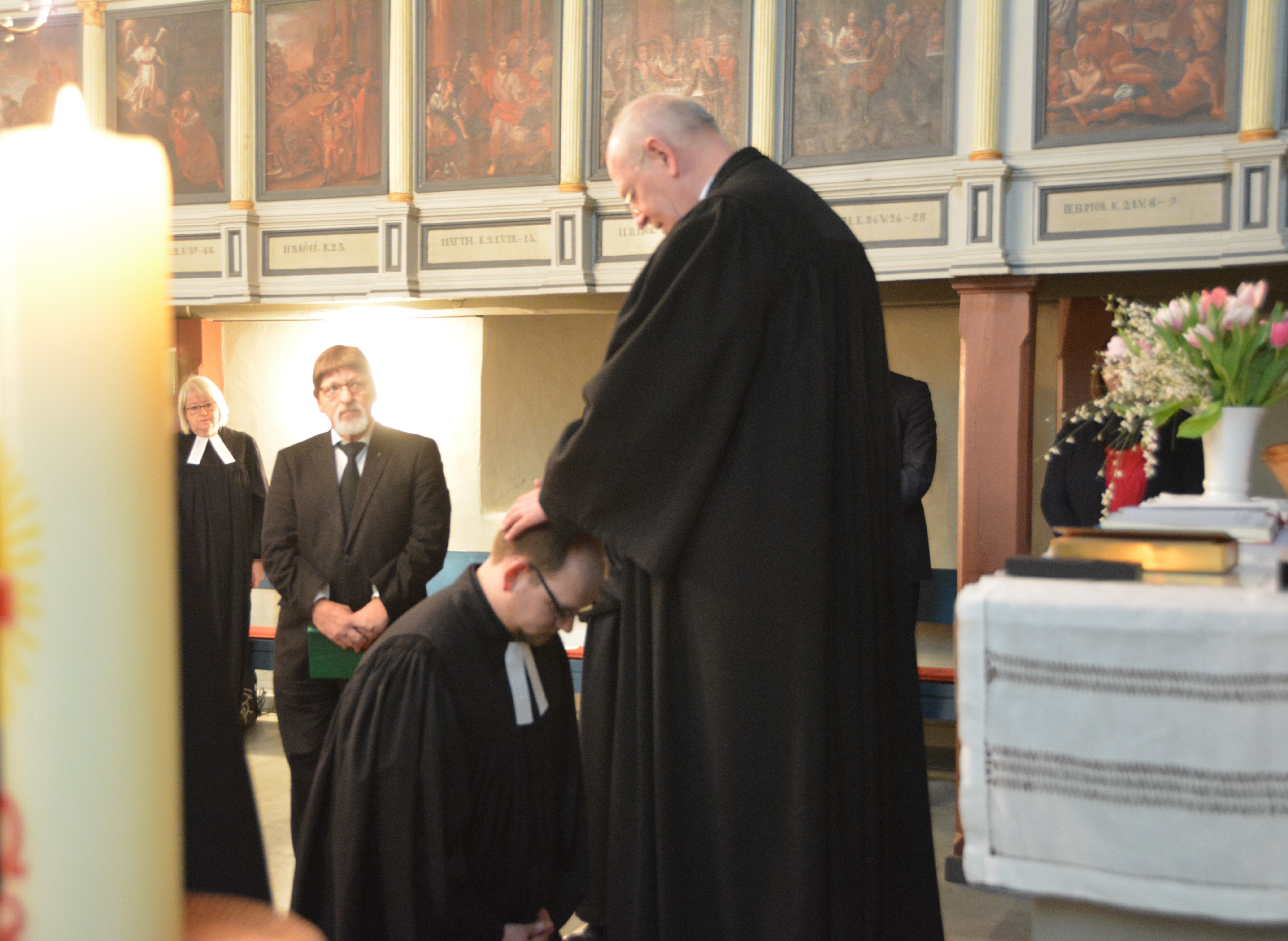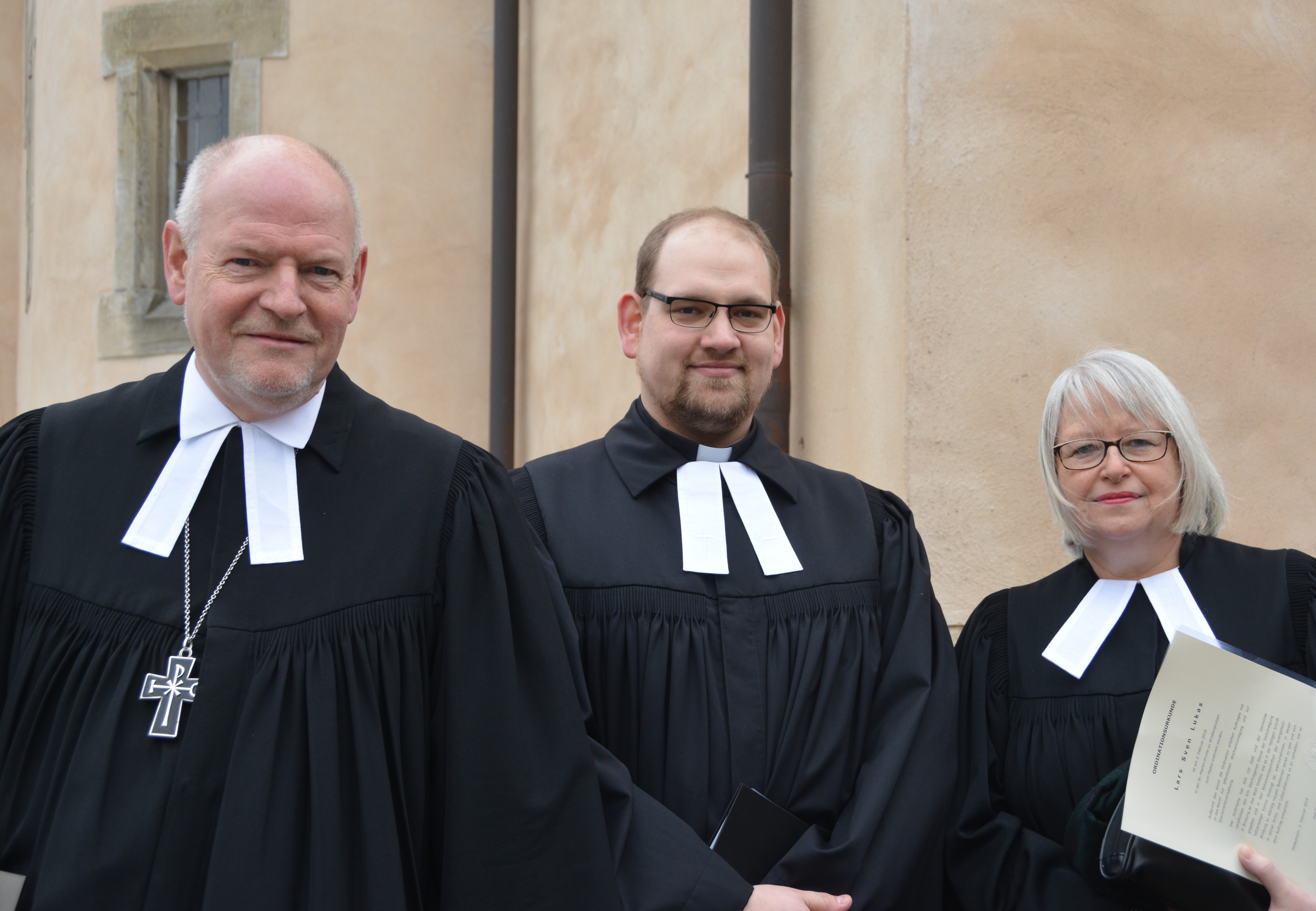 „Nun ist er da“, mit diesen Worten begrüßte Landessuperintendent Eckhard Gorka in der bis auf den letzten Platz der oberen Emporenreihe vollbesetzten St. Martin Kirche Wrisbergholzen den neuen Pastor, Lars Sven Lukas. In den Kirchengemeinden Adenstedt-Wrisbergholzen und Wolterhausen wurde der junge Geistliche am vergangenen Sonntag durch den leitenden Geistlichen des Sprengels Hildesheim-Göttingen in das Amt eines Pastors ordiniert. Für den in Nienburg/Weser geborenen Lars Lukas ist die Gegend bekannt, leistete er doch den praktischen Ausbildungsabschnitt des Vikariats in der Friedenskirche und der Stadtkirche St. Nicolai Alfeld. Pastor Michael Kratochwill war dort sein Vikariatsleiter. Wohnen wird der junge Pastor mit seiner Ehefrau und dem gemeinsamen Sohn im Pfarrhaus in Adenstedt. Das gerade aber noch einer grundlegenden Renovierung unterzogen wird.